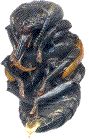 Xylocopa violaceaLes acariens nous posent parfois problèmes, mais ils en posent pareillement aux insectes, et ce n'est pas le malheureux xylocope ci-dessous, qui dira le contraire ! Présentement il s'agit en effet d'acariens parasites du type "encroûtant", lesquels vivent aux dépens de l'hôte et finissent par littéralement l'épuiser. Les acariens dits "phorétiques" (ci-dessous également) font seulement du "stop", et si leur nombre peu constituer une véritable gène, c'est toujours momentané.