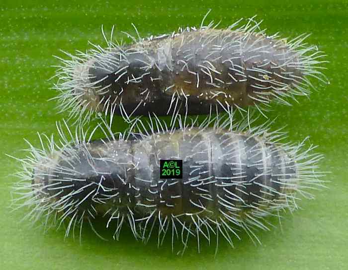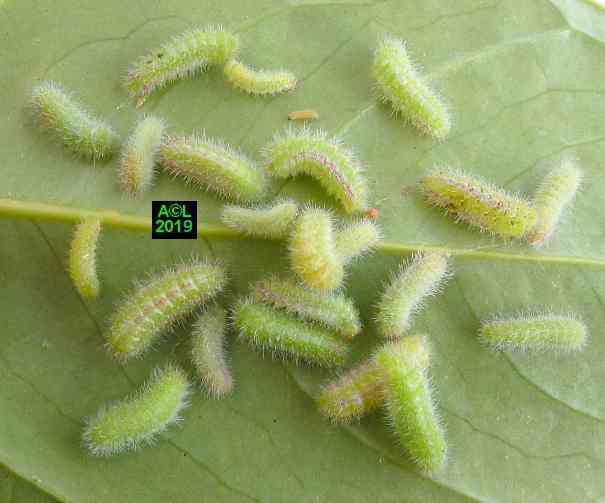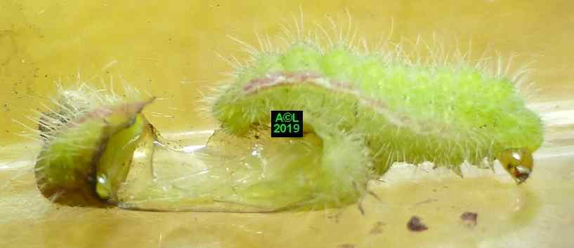 Allez savoir pourquoi, là où la quasi totalité des autres chenilles ont 5 stades larvaires (parfois 6 pour les femelles), les Lycènes, et donc le "Brun" en ont 4. Comme toujours la différence de taille entre le début et la fin des stades étant très importante, il s'ensuit d'inévitables et trompeurs chevauchements, d'où la difficulté de définir les stades larvaires, notamment intermédiaires.