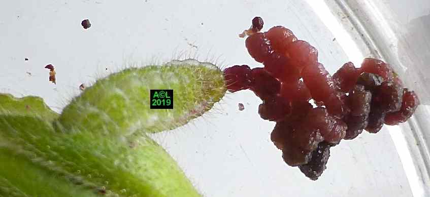 A cela s'ajoute la bien connue boulimie des chenilles ... et un transit intestinal à l'avenant ! En la matière (c'est le cas de dire ! ) le "Brun" mérite assurément le podium, car tout ce qui entre d'un bout sort de l'autre illico ... et en continu ! ... photos à l'appui ! Riche en eau, et toujours consommé par défaut, vous noterez que le feuillage génère une suite excrémentaire plus près de la gastro que des chapelets ci-dessous !
