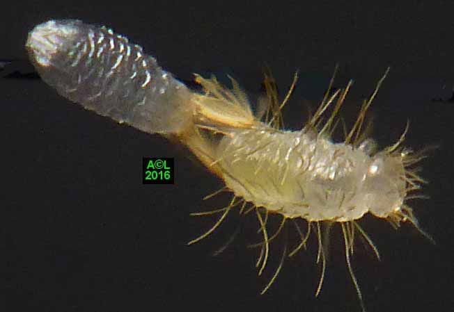 Est-il besoin de le préciser, ces clichés d'éclosions sont à plus d'un titre exceptionnels. L'oeuf, et donc la larvule naissante, sont en effet quasi à la limite du visible à l'oeil nu, et les éclosions ne "prévenant" pas, il faut "tomber" dessus ... et être opérationnel sur l'instant. Enfin mon petit Lumix TZ30 s'est véritablement surpassé (la "pub" est méritée ! ) car je l'ai vraiment poussé au bout du bout de ses possibilités.