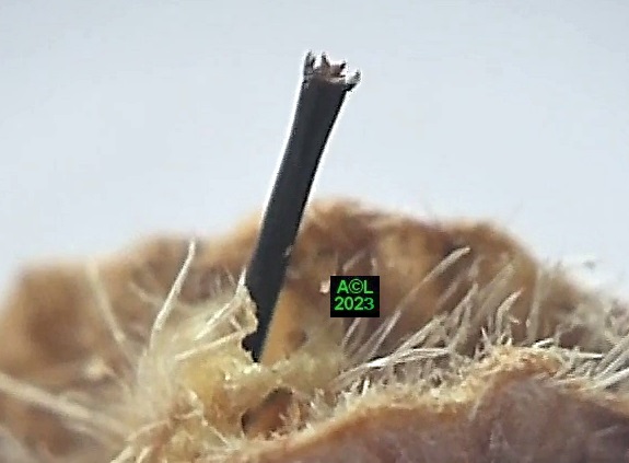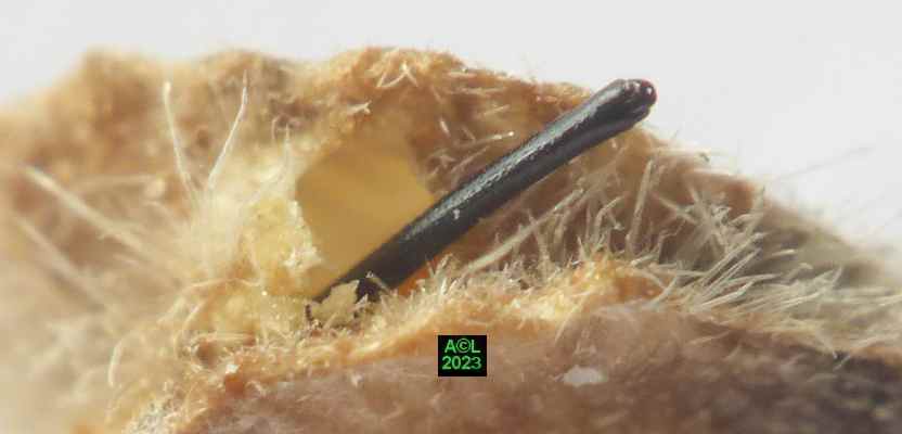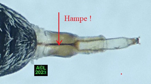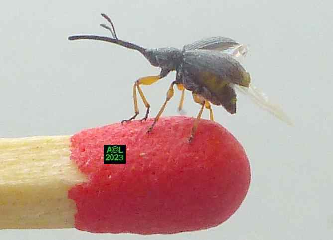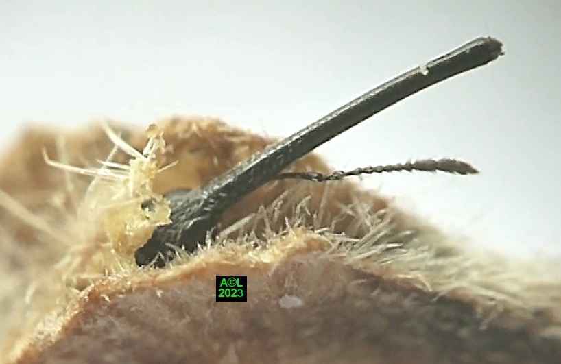 Au passage vous noterez qu'au fil des ans et des évolutions de la classification des insectes cet apion est passé de la Famille des Curculionidae, à celle des Apionidae, puis des Brentidae ! Par-delà le terme de classification, ceux de nomenclature et de systématique sont non moins valides, là où celui de taxonomie est quant à lui consacré par l'usage, bien que l'Académie des Sciences préconise ... taxinomie! L'entomologie c'est aussi cela, et aux yeux de certains c'est même l'art de couper les cheveux en 4 ! Cela dit vous verrez que les cheveux en question ont leur utilité ... sans pour autant devoir les couper en 4 !