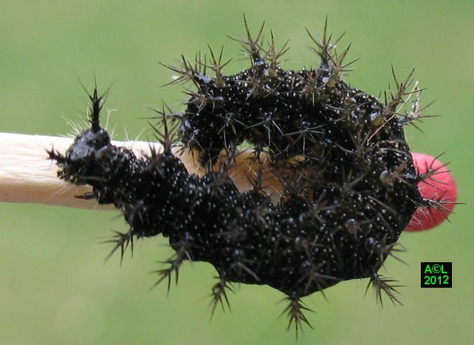 1e au 2e stade larvaire, la chenille attrape en quelque sorte la