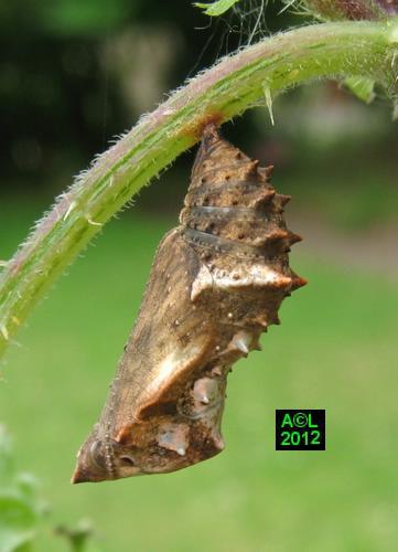 nymphoser, la chenille de l'Araschnia se chrysalide volontiers sur