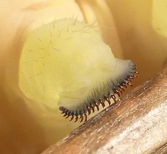 de sa chrysalide. Il s'ensuit un abdomen nettement plus volumineux