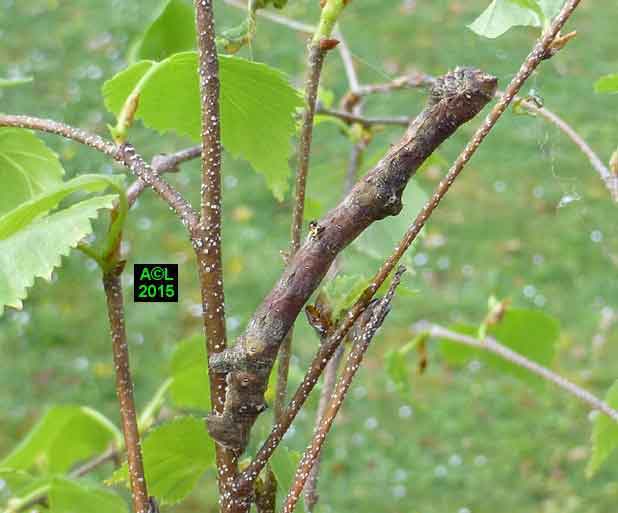Vous noterez que les chenilles hivernent sans protection particulière, simplement "cramponnées" aux brindilles de l'arbre nourricier (bouleau dans le cas présent). Vous noterez également qu'il y a eu de la casse ( froid ? prédation ? parasites ? ), car sur les 7 bestioles initiales, seules 3 ont été retrouvées.