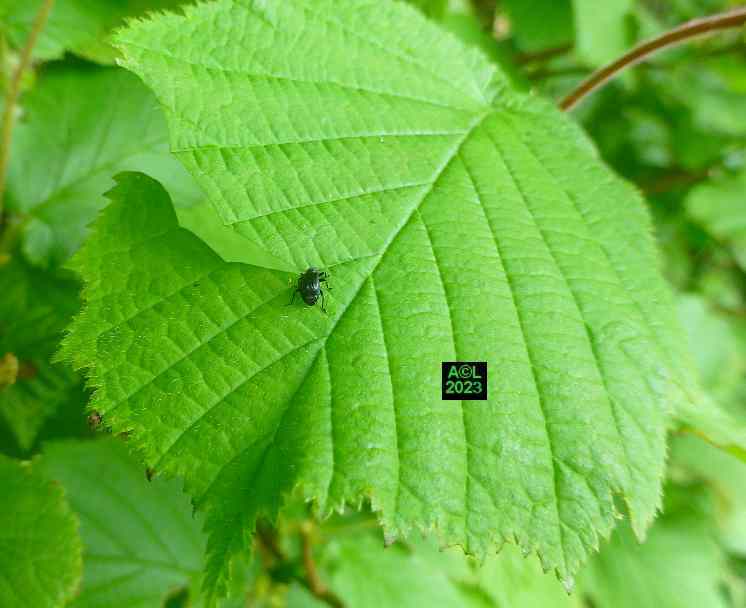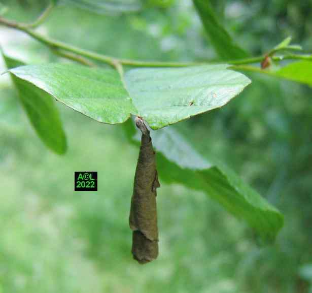 C'était à la mi-Mai, en bordure d'une allée forestière, et la chance aidant je suis tombé sur un noisetier où les cigares étaient particulièrement nombreux, et les "manufacturiers" eux aussi bien présents. Ne pouvant m'attarder (en dépit d'observations déjà prometteuses!), j'ai pu récupérer un petit lot de bestioles, lesquelles se sont très vite retrouvées au jardin, sur un noisetier en quelque sorte "vierge".