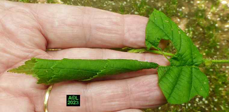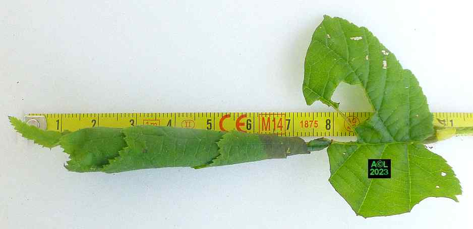 Dès le lendemain plusieurs cigares "pendouillaient" déjà au bout des branchettes, et à maintes reprises j'ai pu voir la minuscule bestiole à l'oeuvre, qu'il s'agisse de la découpe de la feuille, ou du plus "énigmatique" enroulement du cigare.
