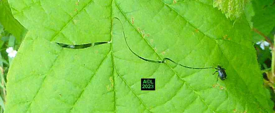 Le cigarier, à la fois noir et minus ( 3,5 mm ! ) qui a initié cette page entomo est le Deporaus betulae (= femoralis Latr. = femoratus ol.), lequel vit donc sur le Bouleau, mais aussi sur l'Aulne, le Charme, ou encore le Noisetier, arbuste très apprécié par chez moi ... voire plébiscité ! Bien entendu il y a des espèces nettement plus grosses, et plus vivement colorées, telle Apoderus coryli, le curieux "poinçonneur des noisetiers" (voir site ! )