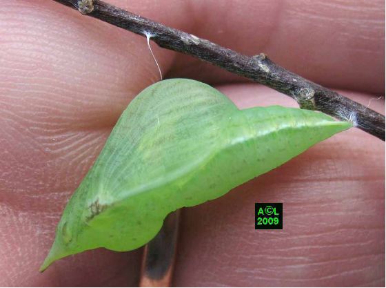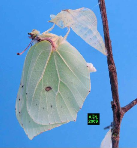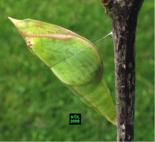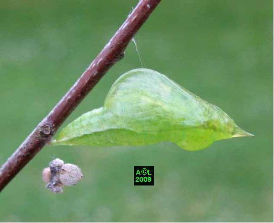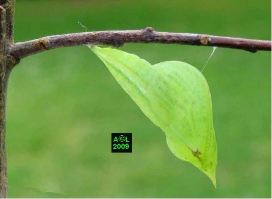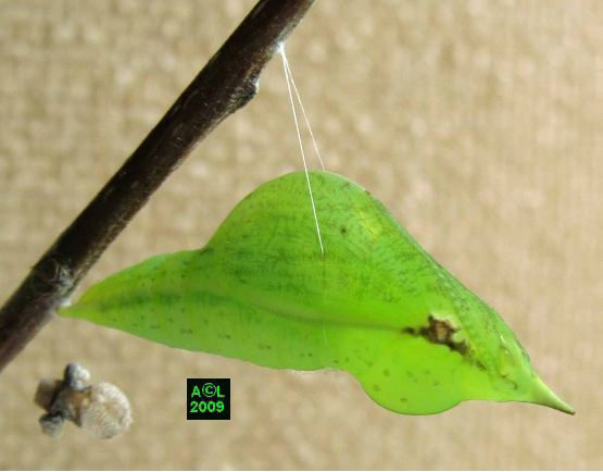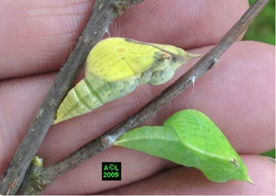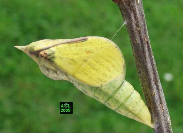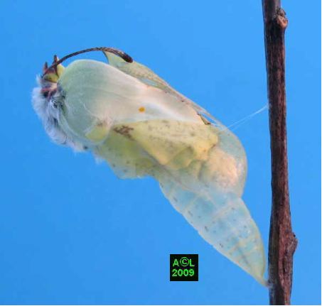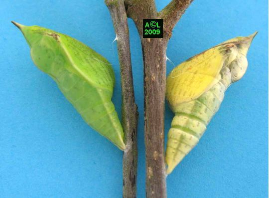 & 2)- La chysalide vire au jaune, les antennes passent au