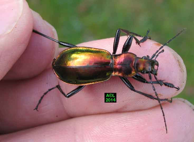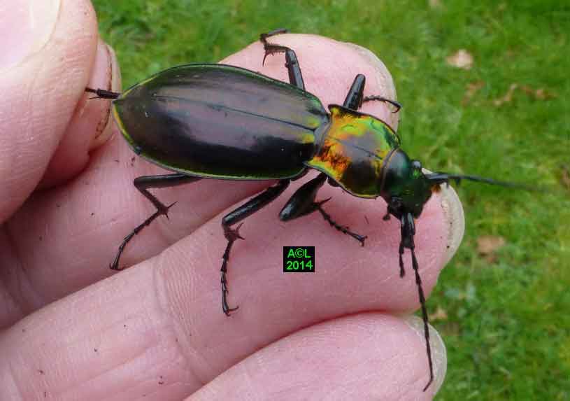 C'était en juillet 1973, durant les vacances, et je campais sur Ascarat, quasiment au pied du fameux Pic d'Arradoy. Sans pour autant dédaigner les autres espèces, je recherchais avant tout le Chrysocarabus lineatus, et ma surprise a été grande en voyant ces énormes bestioles flotter dans mes pièges à vinaigre (*). Pour tout dire il m'a fallu examiner les ailerons membraneux pour constater qu'il s'agissait bien de splendens, et non du lineatus espéré, d'où une certaine déception ... même si j'avais le sentiment d'avoir finalement déniché une bestiole hors normes