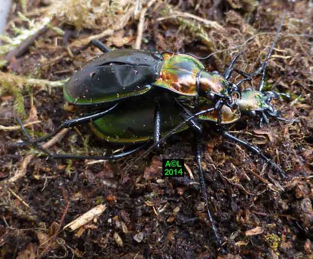 Entre l'élevage et l'épingle de collection le choix a été plus que difficile, la bête pouvant se qualifier de rare. Néanmoins, estimant l'occasion trop belle pour la laisser passer j'ai décidé de "tenter le coup". Contre toute attente les accouplements se sont très vite multipliés, et cela totalement hors saison ( quoique ! cf. nota ! ), puisque la "repro" de nos Chrysocarabus est printanière. Epuisé semble-t-il par ses excès génésiques le mâle est mort avant l'hiver, et que ce soit avant ou après hivernage ... les prometteuses femelles n'ont jamais pondu !