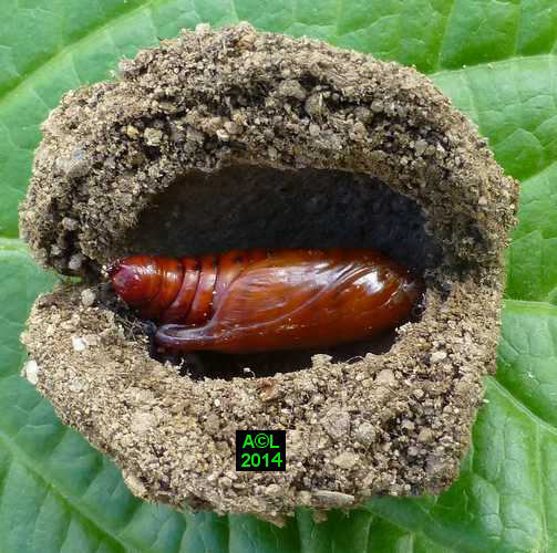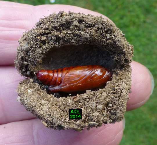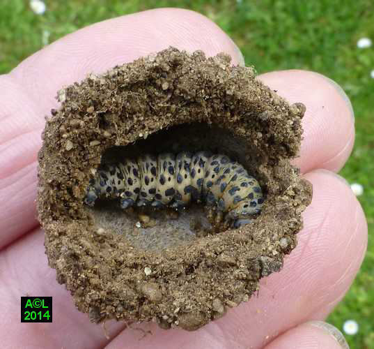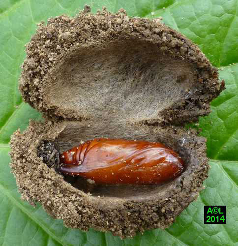Là où d'autres affichent nettement la couleur ( en en changeant ! ), l'arrivée à terme de la chenille de cucullie se passe "incognito". La bestiole cesse simplement de s'alimenter, et se contente de quitter son "garde-manger" pour aller s'enterrer assez profondément . Dans un premier temps elle va aménager une logette à sa mesure et y tisser un cocon isolant fort épais, Dame Nature ayant semble-t-il prévu l'amplitude des écarts thermiques "encaissés" par la chrysalide. En effet le "coconnage" ayant généralement lieu en Juillet-Août, et les éclosions en Avril-Mai de l'année suivante, la chrysalide peut se voir soumise à des épisodes climatiques tant caniculaires que ... sibériens !