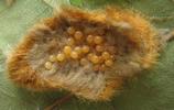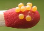 Curiosité et loupe binoculaire aidant, j'ai décortiqué aux "brucelles" et compté (bel excercice de patience ! ) une grosse ponte de 3 cm de long, laquelle comportait 592 oeufs. A noter que le chorion (= "coque") est manifestement résistant (et moi pas trop maladroit !), car 2 oeufs seulement s'en sont trouvés cassés !!!