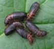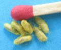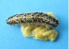 (*) Je pense qu'il s'agit d'oeufs "prêts à éclore", l'armature des crochets buccaux (noire) étant nettement visible par transparence (sous binoculaire). J'ajouterais que les "oeufs" sont extrêmement petits en raison même de l'importance de leur nombre, et plus encore de la petitesse des chenillettes attaquées.