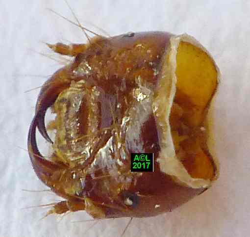 larve (exuvie d'une L4); photo 2 : tête de la