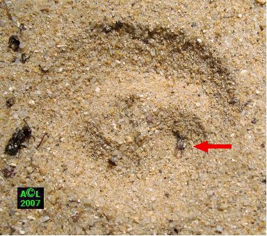 Le plus souvent l'observation porte sur des entonnoirs en quelque sorte provisoires, car bien souvent creusés dans l'urgence d'un déterrage intempestif . Brutalement mise au jour la bestiole ne songe alors qu'à fuir, et donc à s'enfouir. Une fois à couvert, et si je puis dire rassurée, elle se contente d'éjecter le sable à coups de tête, et par gravitation il s'ensuit la formation d'un entonnoir qui pourrait se qualifier de " secours ", ou encore de " simplifié " eu égard à la méthode et au résultat.