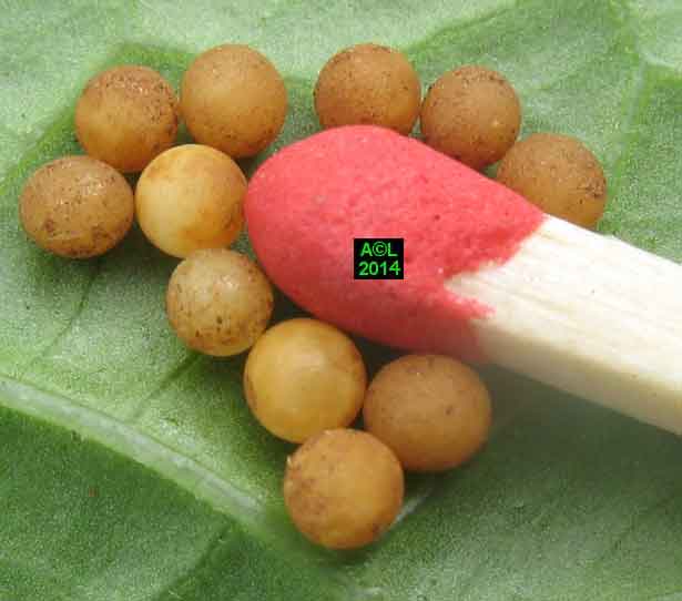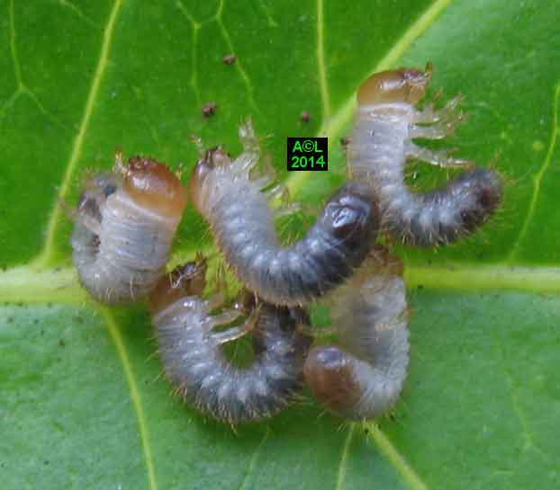 Ce faisant, il s'ensuit une bonne protection, d'où un nombre d'oeufs relativement faible, de la même façon qu'une "casse" importante (prédation par exemple), est classiquement compensée par une ponte numériquement élevée. Faute d'avoir pris le temps de le vérifier, j'avoue ignorer le nombre des oeufs pondus par les Gnorimus mais je pense pouvoir le situer aux alentours d'une cinquantaine d'unités.