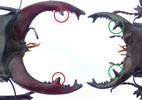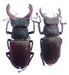 !Morphologiquement très proche, et un temps considéré comme simple sous-espèce ( voire carrément "négligé" ! ), le lucane méridional (Lucanus tetraodon) n'excède pas 50 mm, et de prime abord la confusion est aisée avec des "cervus" de petite taille. Outre la relative modestie de sa stature, le lucane méridional est plus sombre, plus terne, et le peigne antennaire a 6 dents ... et donc une de plus que son "grand frère" ! A cela s'ajoute un denticule mandibulaire très différemment situé qui représente, à mon avis, le plus fiable critère sélectif (illustré ci-dessous). La biologie de L. tetraodon est identique à celle de L. cervus.