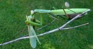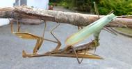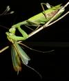 Au pays des mantes religieuses les amours peuvent également s'avérer fatales pour le mâle, mais c'est loin d'être systématique, l'envol salvateur prévalant le plus souvent. Cela dit notre mâle n'a pas intérêt à "s'endormir sur ses lauriers", et encore moins à demeurer à portée des pattes ravisseuses de sa partenaire. Le "passage à table" ( si je puis dire ! ), est d'autant plus spectaculaire qu'il peut intervenir alors que les bestioles sont encore accouplées, mais cela est à mon avis peu fréquent et reste sans doute subordonné à un ventre particulièrement affamé.