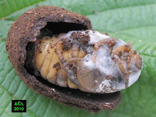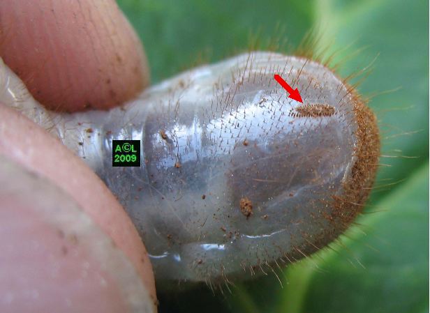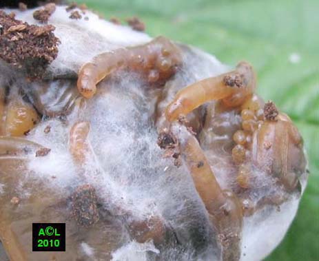 creux contenant des larves ont été coupés au