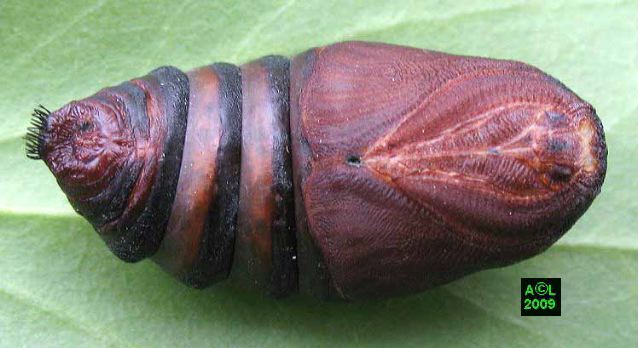 1)- chrysalide "in situ"; 2)- chrysalide isolée,