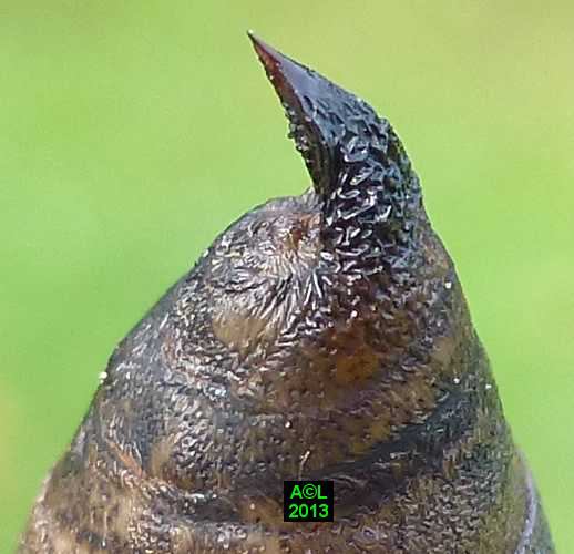 Vous noterez que ces couronnes dentelées sont interrompues ventralement, mais surtout qu'elles sont très comparables à celles des chrysalides de la sésie apiforme (Sesia apiformis, voir site) ou encore du Cossus gâte-bois (Cossus cossus, voir site). Pour mémoire, ces chrysalides sont "outillées" pour pouvoir percer leurs robustes cocons boiseux, les couronnes dentelées (présentes sur tous les segments) leur permettant ensuite de migrer à l'air libre, peu avant l'éclosion du papillon. Généré par les contorsions et tortillements de la chrysalide, le déplacement est laborieux, passablement désordonné, et au final très modeste (au maxi 30 cm pour la Sésie) .... mais il est !