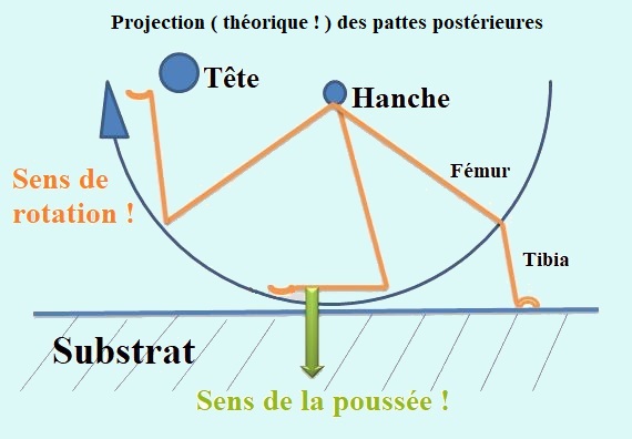 En règle générale le saut est la "chasse gardée" des pattes postérieures, d'où de logiques modifications morphologiques, au demeurant aussi simples qu'efficaces. L'adaptation au saut peut en effet se traduire par des fémurs plus volumineux ( et donc plus "musclés" ! ) que ceux des autres pattes, comme chez les altises par exemple. L'allongement plus ou moins conséquent des postérieures, toujours en regard des autres membres, constitue également une excellente option. Souvent complétée par des fémurs "renforcés", c'est même une solution particulièrement efficace, carrément plébiscitée ... par les sauterelles !