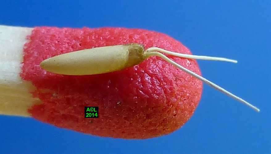 Vous noterez que les pontes rectilignes (= "en lignes" ! ) correspondent à la progression elle-même rectiligne de la pondeuse. Non moins logiquement la rotation de la bestiole (à la manière d'un compas) génère des pontes en arcs de cercles, voire quasi circulaires comme le "champ d'éoliennes" ci-dessus présenté. La lumière faisant très vite fuir la bestiole je n'ai pu multiplier les photos, et encore moins faire une vidéo ... mais comme vous le verrez je n'avais pas dit mon dernier mot !