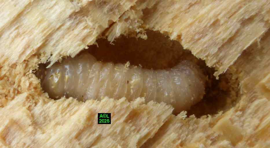 Chez notre "sino" le bois ingéré par les larves étant fortement dégradé (d'où la notion d'insecte saproxylophages) le processus diffère, mais la finalité reste la même. De fait, chaque uf pondu se verra flanqué de levures qui rendront le bois en quelque sorte "comestible", tout en permettant à la larvule naissante de "s'ensemencer". Vous noterez que ce processus est commun à de nombreux insectes xylophages, et que ces levures sont stockées et dispensées via un organe idoine appelé "mycangium".