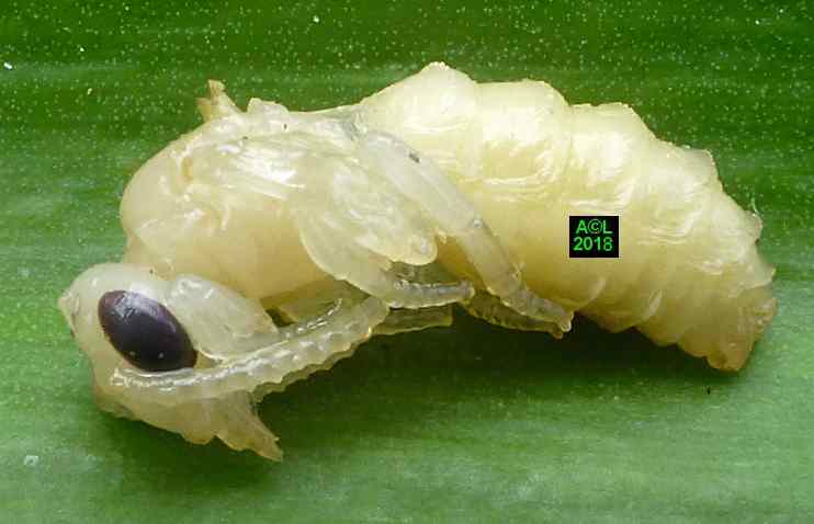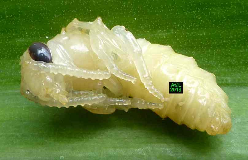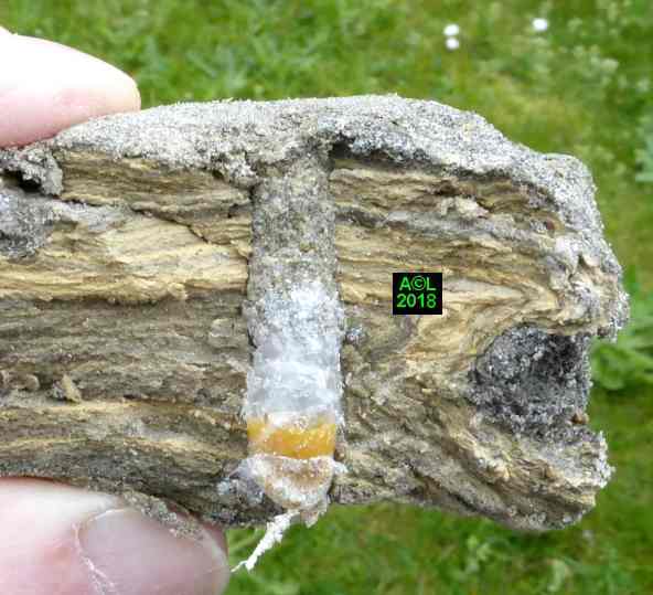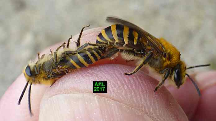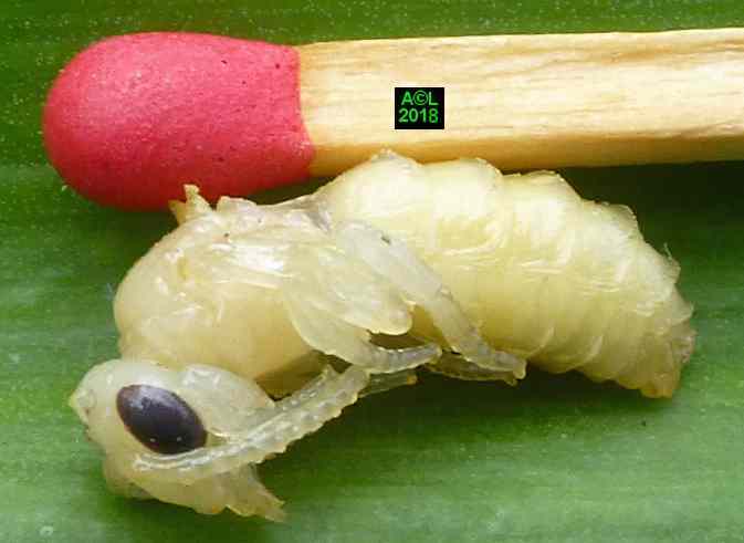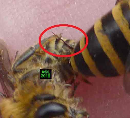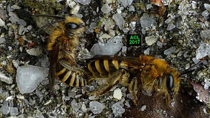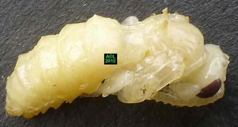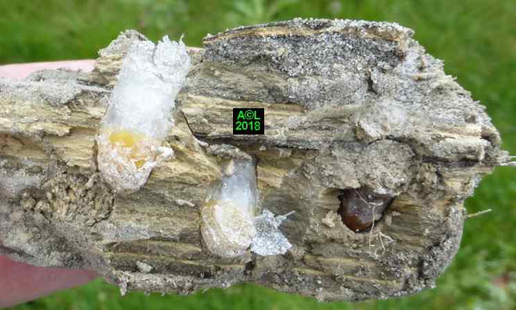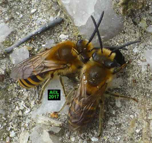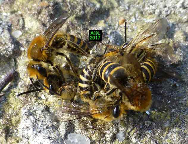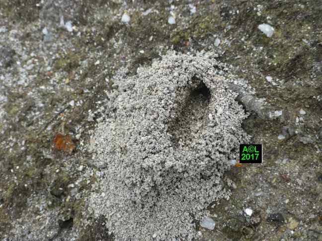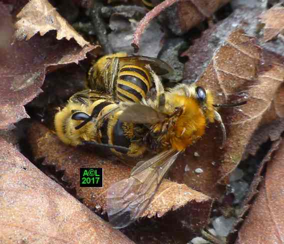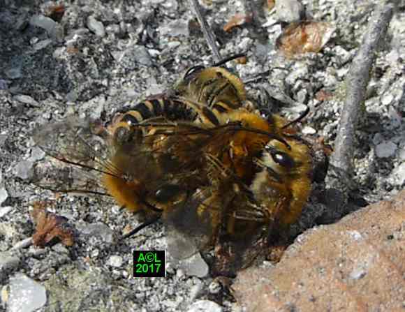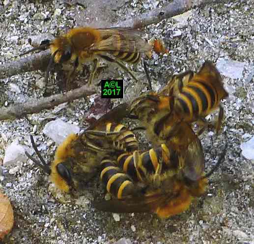 Le leurre sexuel est si efficace, et les triongulins si nombreux ( les qualifier d'innombrables relèverait de l'euphémisme ! ), que l'existence même des abeilles du lierre semble tenir du miracle. Désireux d'en avoir le cur net je suis allé "piocher" (au sens propre ! ) dans la zone du site la plus fréquentée par lesdites abeilles, et la mieux "dotée" en triongulins. Vous l'aurez compris il s'agit de la zone du "bouleau racho aux 25 pontes" figurant au début de la page précédente.
