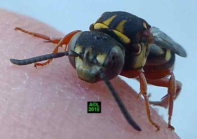 Découvertes dans un lot de cellules comportant des larves avancées, il m'a semblé logique de voir en ces prénymphes de futures Colletes, l'iconographie d'une publication universitaire hollandaise allant en ce sens. En fait, comme les images à suivre le montrent, il ne s'agit pas de Colletes en devenir, mais bel et bien de prénymphes d' "Epéolus à cuisses rouges" (Epeolus cruciger), abeille cleptoparasite dite "abeille coucou" !