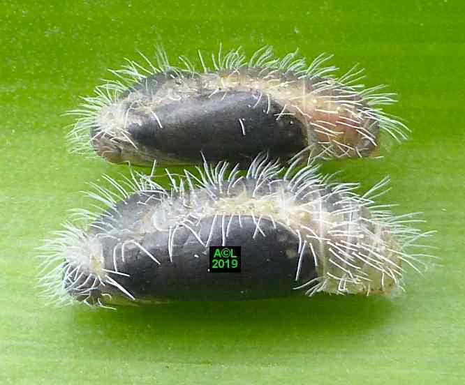 Allez savoir pourquoi, là où la quasi totalité des autres chenilles ont 5 stades larvaires (parfois 6 pour les femelles), les Lycènes, et donc le "Brun" en ont 4. Comme toujours la différence de taille entre le début et la fin des stades étant très importante, il s'ensuit d'inévitables et trompeurs chevauchements, d'où la difficulté de définir les stades larvaires, notamment intermédiaires.