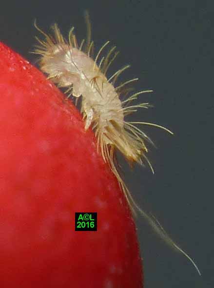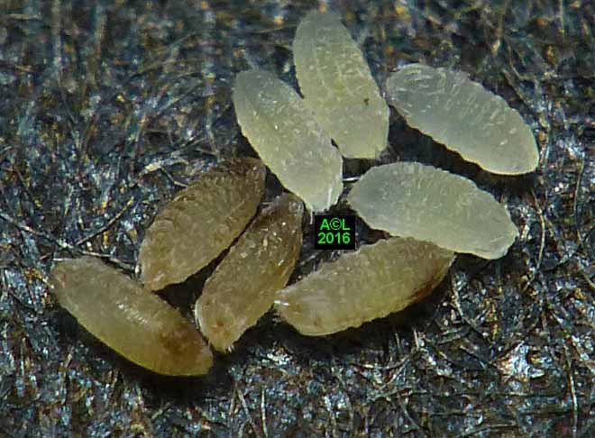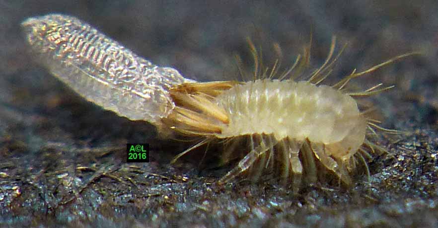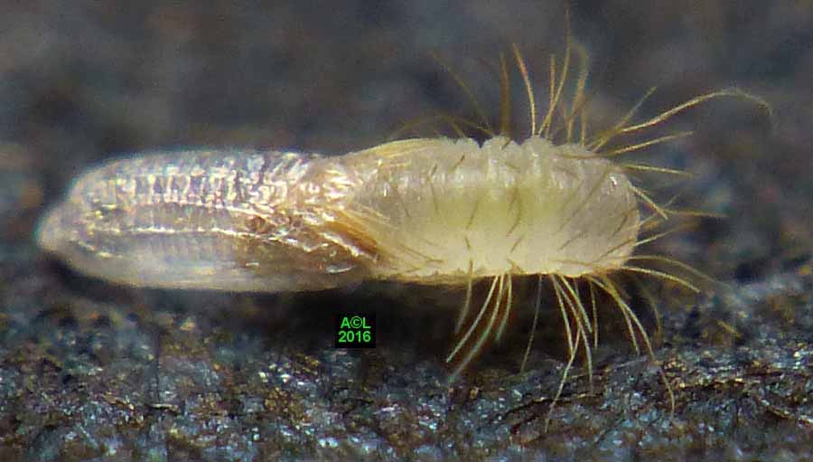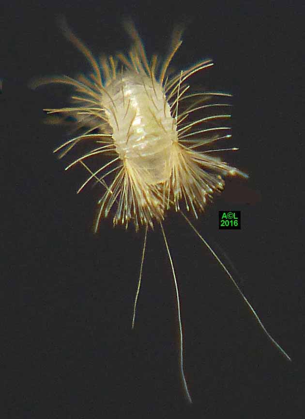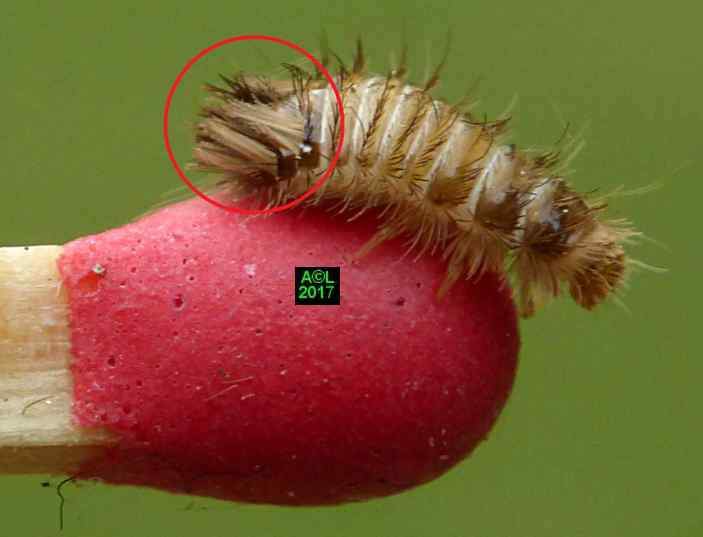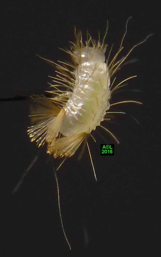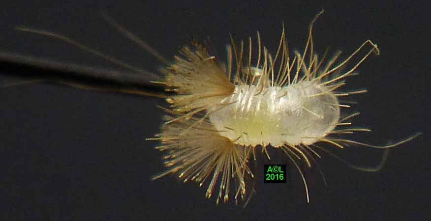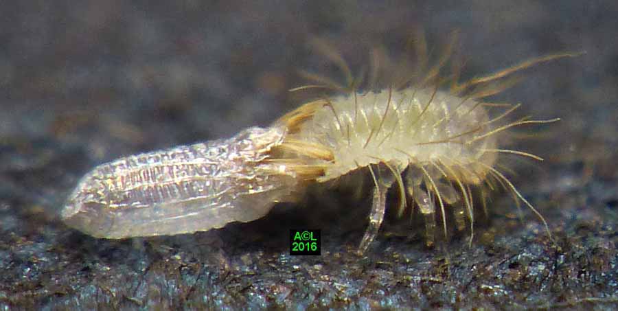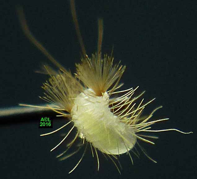 Est-il besoin de le préciser, ces clichés d'éclosions sont à plus d'un titre exceptionnels. L'oeuf, et donc la larvule naissante, sont en effet quasi à la limite du visible à l'oeil nu, et les éclosions ne "prévenant" pas, il faut "tomber" dessus ... et être opérationnel sur l'instant. Enfin mon petit Lumix TZ30 s'est véritablement surpassé (la "pub" est méritée ! ) car je l'ai vraiment poussé au bout du bout de ses possibilités.