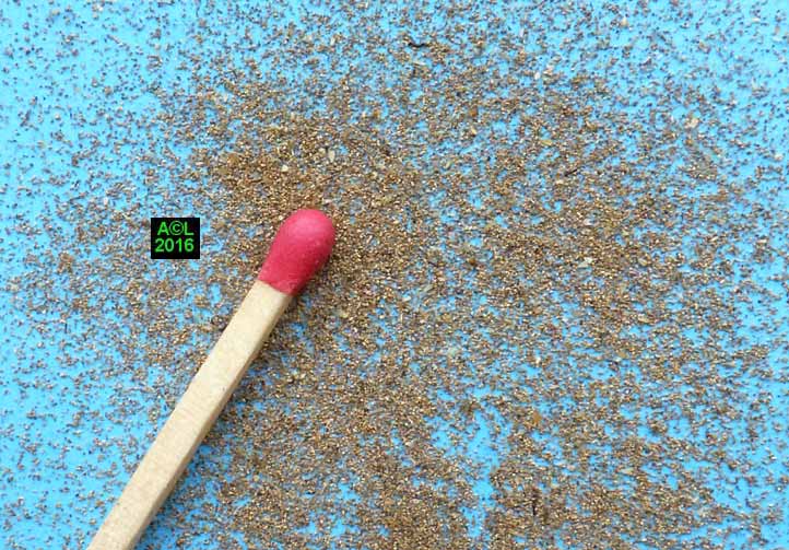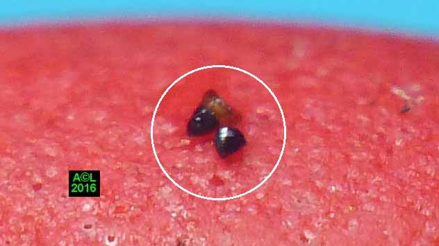 Dans le cadre d'une collection d'insectes la "poussière" en question permet de déceler à coup sûr la présence du parasite, mais aussi de le localiser, car elle se situe évidemment à l'aplomb de l'insecte attaqué. Découverte à un stade précoce, c.a.d. en l'absence de dégâts apparents, cette pulvérulence permet à coup sûr d'éviter le pire ... sous réserve d'intervenir rapidement, via un insecticide ou ... le congélateur !