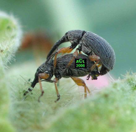 Initialement inconnue en France la minuscule bestiole s'est largement répandue et comme elle ne fait pas les choses à moitié, on peut même dire qu'il n'est pas un pied de rose trémière qui lui échappe là où elle sévit. Cet Apion est par ailleurs largement répandu (Europe moyenne et méridionale, Asie mineure, Moyen-Orient, Amérique du Nord) mais nul ne sait comment il est arrivé chez nous, et encore moins comment il peut pareillement progresser ... encore que !