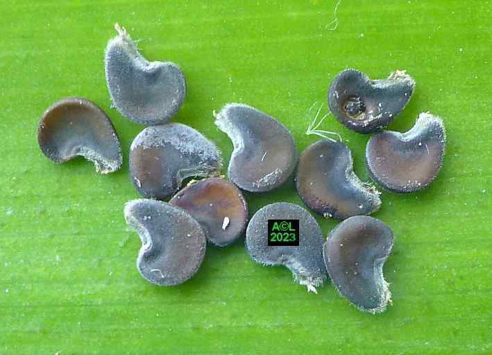 La nature faisant toujours bien les choses (du moins le dit-on !) vous verrez que les larves préparent la sortie des insectes adultes en pratiquant une ouverture dans la très coriace enveloppe de la graine. En prélude à la nymphose cette ouverture sera obturée par un "bouchon" protecteur qui sera en temps voulu perforé, puis peu à peu grignoté pour permettre l'émergence du nouvel apion. Bizarrement l'émergence en question s'apparente souvent à une forme d'accouchement tant elle s'avère laborieuse. Reste à savoir si le trou pratiqué est toujours trop petit ... ou les bestioles toujours trop pressées de se dégourdir les pattes !