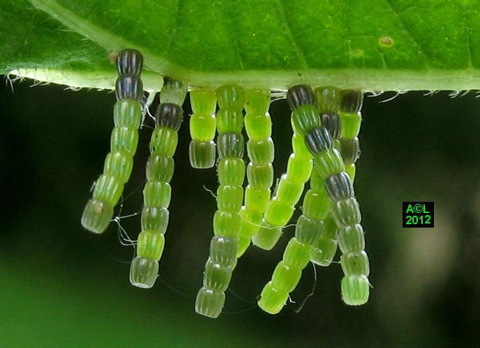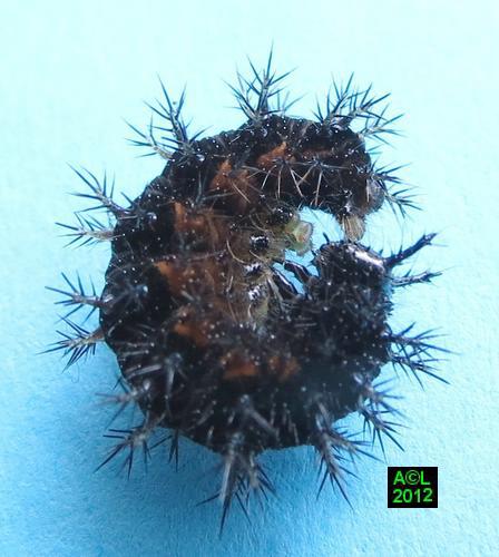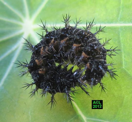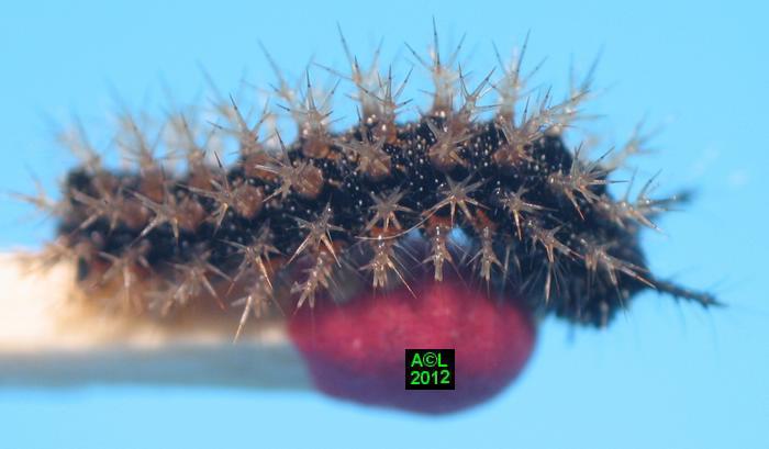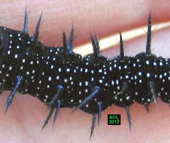 Les chenilles d'Araschnia sont dotées d'épines tégumentaires "barbelées", à la fois très nombreuses et très acérées ... de quoi décourager les gosiers affamés ! Ces chenilles ne sont pas urticantes et leur manipulation est sans danger pour les épidermes normalement constitués. En cas de tendances allergiques mieux vaut cependant s'abstenir ... des fois que !