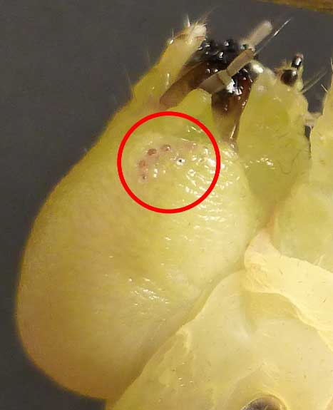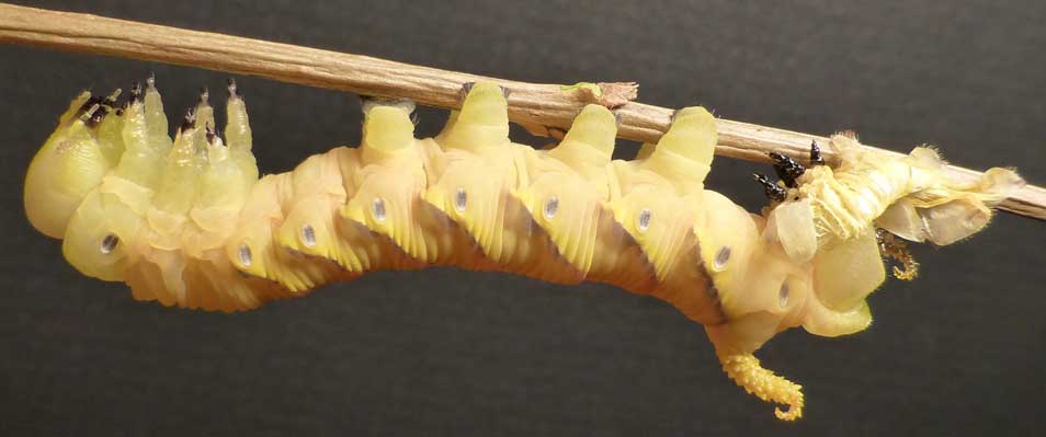 de sa chrysalide. Il s'ensuit un abdomen nettement plus volumineux