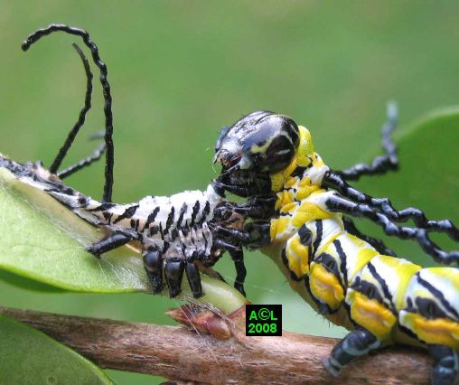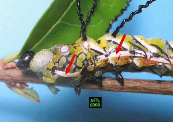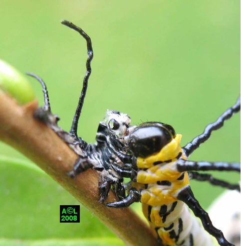 chenille en position de pré-mue pour le passage