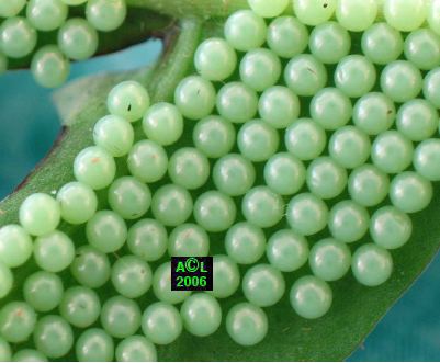 gauche, suit de peu l'émergence de la femelle, et la ponte