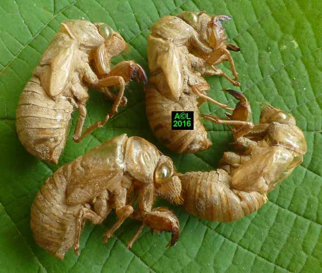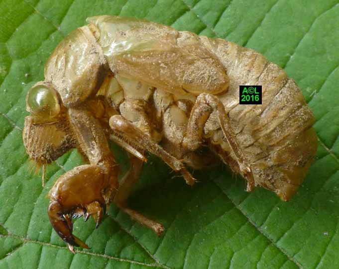 Toujours à propos du temps, et de son illustration, je ferais état d'une cigale d'Amérique du Nord, Magicicada septemdecim, (*) qui détient un très étonnant record, puisque son développement larvaire, et donc souterrain, demande en effet 17 ans. A l'inverse, et ce n'est pas le moins étonnant, ni le moindre des paradoxes, la cigale adulte ne vit que quelques jours, voire quelques heures, puisqu'elle naît au crépuscule et peut passer de vie à trépas dans la journée qui suit, sa seule raison d'être étant d'assurer la pérennité de son espèce. J'ajouterais que les émergences sont massives, et donc parfaitement synchronisées, d'où la fabuleuse précision d'un rendez-vous pourtant fixé par la Vie 17 ans auparavant. Au final, et je pense que vous en conviendrez, on ne peut que rester confondu devant l'étrange destinée de cet insecte.