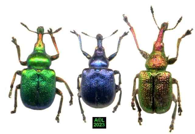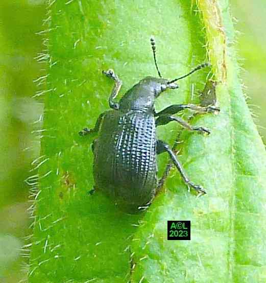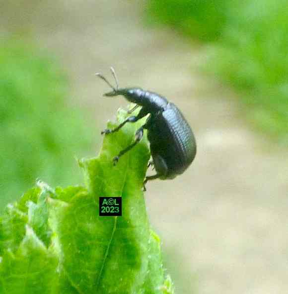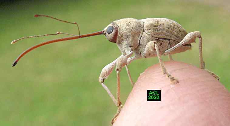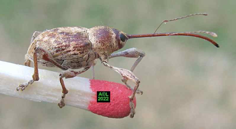 Les "Cigariers" sont de petits Coléoptères qui relèvent de l'immense Famille des Curculionidae ( 1325 espèces en France ! ), autrement dit des "Charançons", au sens très large du terme. Les "membres" de cette Famille sont principalement caractérisés par la présence d' un "rostre" plus ou moins allongé, lequel prolonge la tête et porte les pièces buccales à son extrémité. Le rostre en question peut parfois égaler la longueur du corps, comme chez les Balanins que j'ai la faiblesse de trouver charmants (ci-dessous).