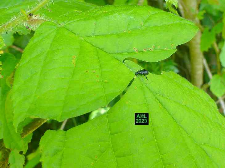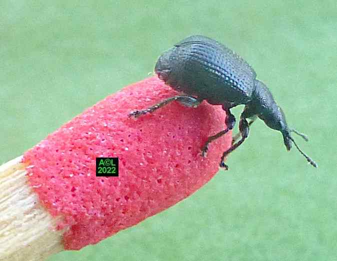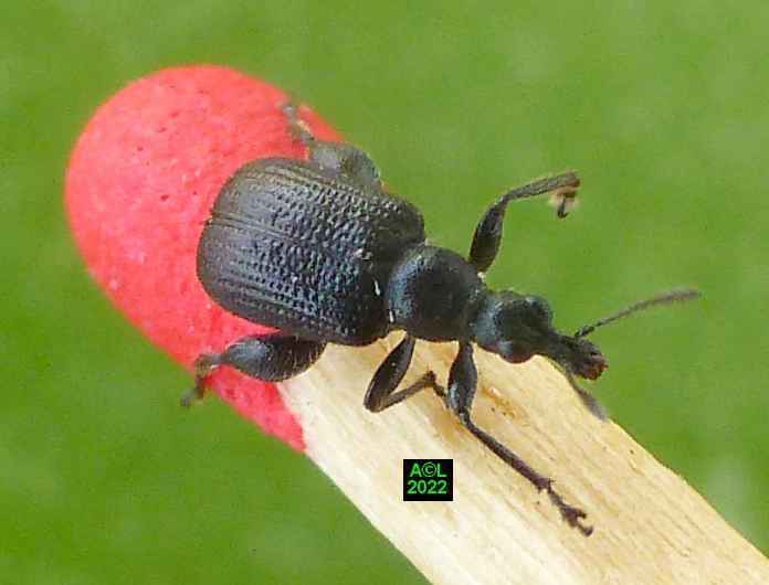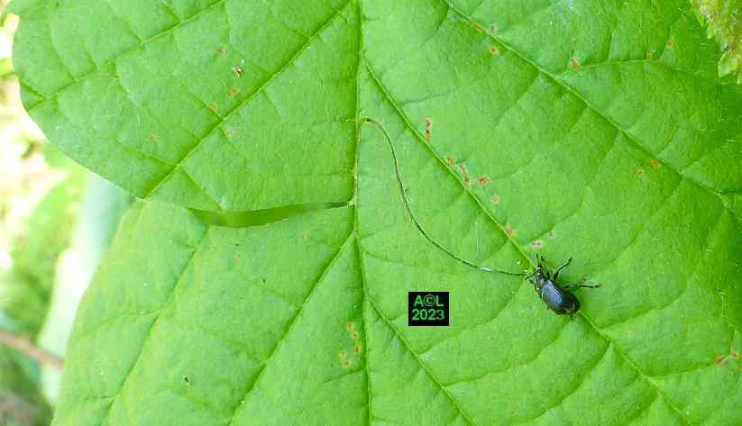 Le cigarier, à la fois noir et minus ( 3,5 mm ! ) qui a initié cette page entomo est le Deporaus betulae (= femoralis Latr. = femoratus ol.), lequel vit donc sur le Bouleau, mais aussi sur l'Aulne, le Charme, ou encore le Noisetier, arbuste très apprécié par chez moi ... voire plébiscité ! Bien entendu il y a des espèces nettement plus grosses, et plus vivement colorées, telle Apoderus coryli, le curieux "poinçonneur des noisetiers" (voir site ! )