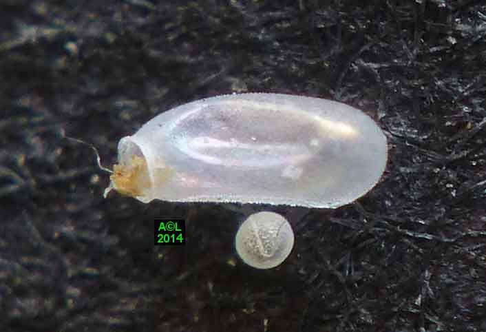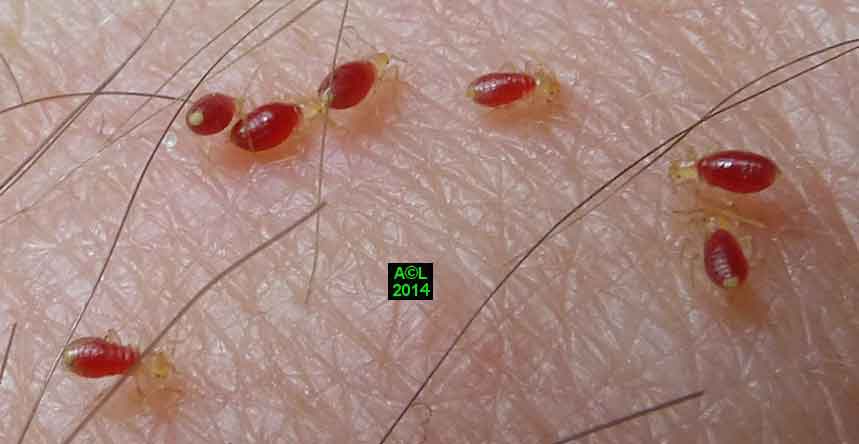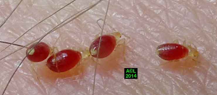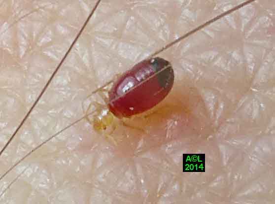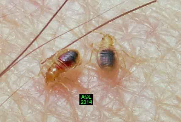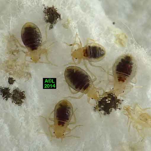 Comme toujours chez les insectes la durée du développement est essentiellement fonction de la température et de la nourriture, mais en trouvant gîte et couvert là où nous habitons le cycle des bestioles s'en trouve plus ou moins optimisé et régulé aux alentours d' 1 mois et demi à 2 mois "d'oeuf à oeuf". Contrairement aux insectes soumis à des métamorphoses dites complètes (chenille /chrysalide/ papillon par exemple) l'évolution des Cimex se fait au cours de 5 stades larvaires, quasi copies de l'adulte ... taille en moins ! La croissance des larves est bien sûr tributaire de la prise de nourriture, chaque passage au stade supérieur nécessitant au moins un repas sanguin ... et le temps de le digérer !