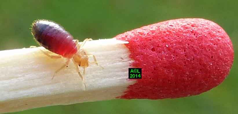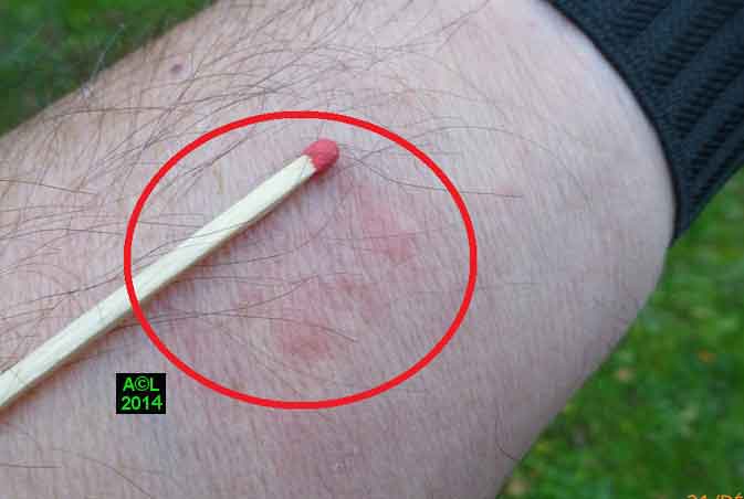 La présence de cette punaise est bien sûr constatée par les réactions cutanées faisant suite aux piqûres, mais le diagnostic n'est pas toujours évident car l'aspect et l'importance des lésions peuvent beaucoup varier d'une "victime" à une autre, tout étant facteur de "sensibilité" ... comme le sont les "ASA" de votre APN ! A cela s'ajoutent de possibles confusions avec d'autres piqûres, moustiques par exemple. En cas de doute la seule solution consiste en une recherche minutieuse des "coupables", et même très minutieuse si la contamination est récente, et les bestioles encore peu nombreuses.