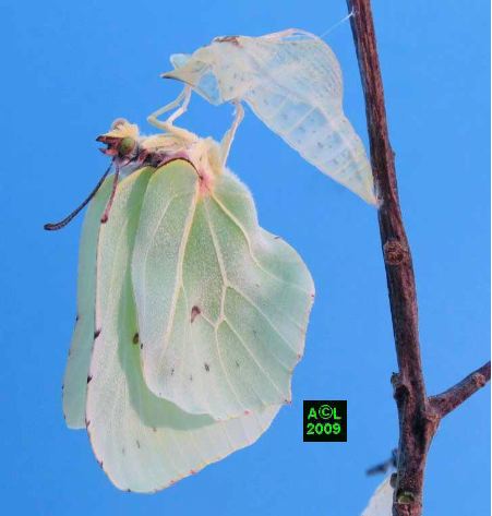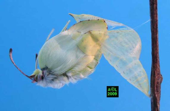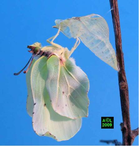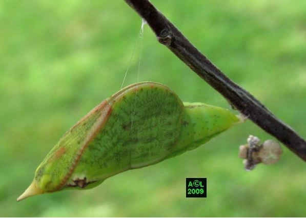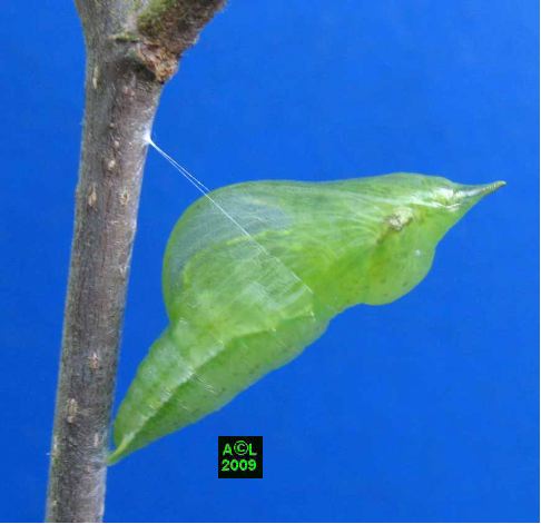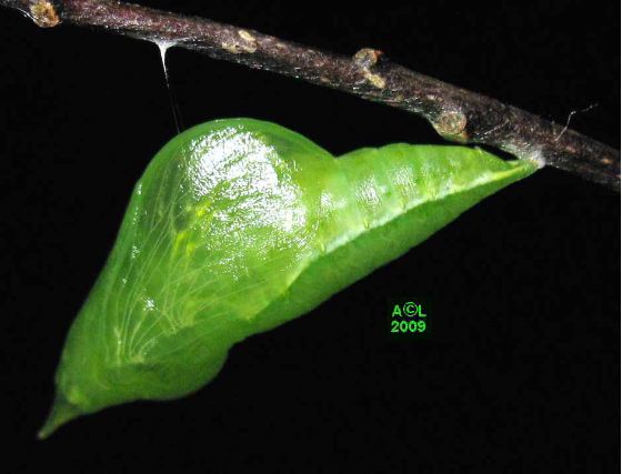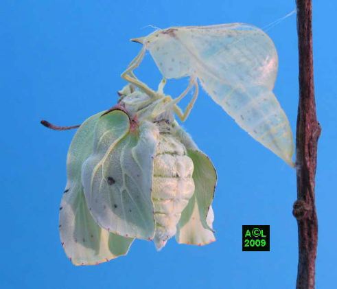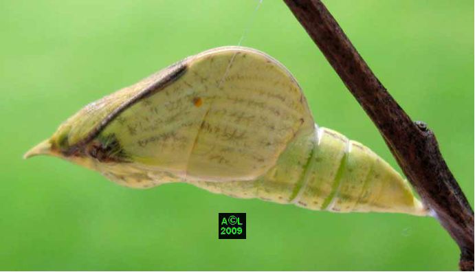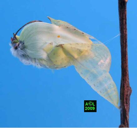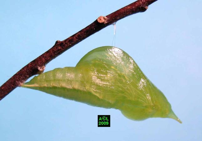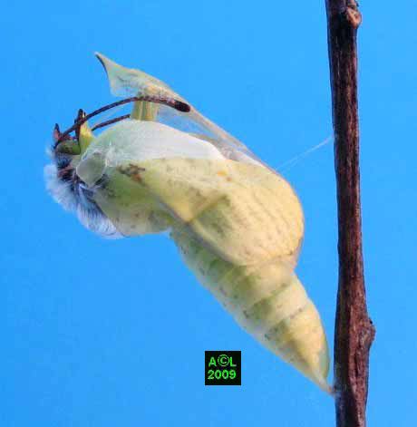 & 2)- La chysalide vire au jaune, les antennes passent au
