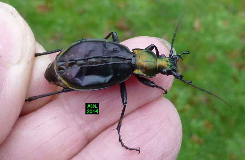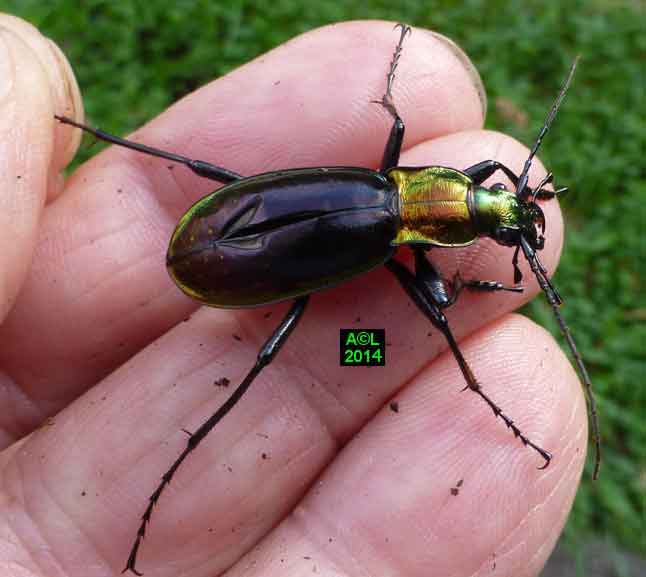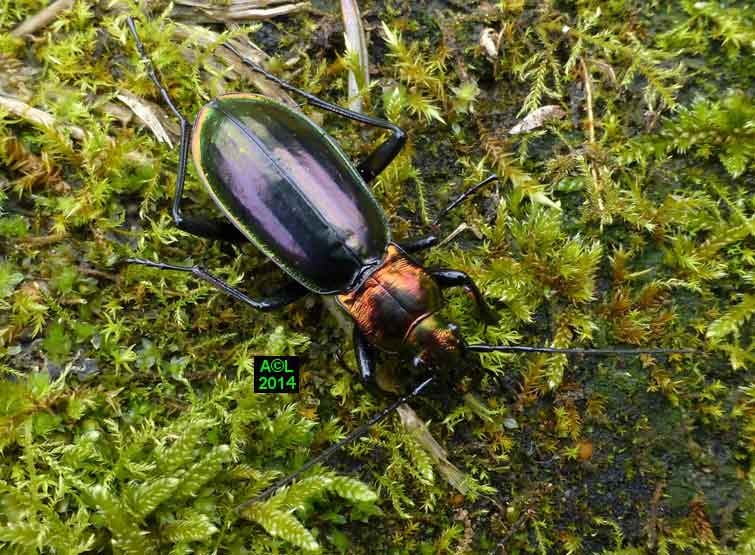 C'était en juillet 1973, durant les vacances, et je campais sur Ascarat, quasiment au pied du fameux Pic d'Arradoy. Sans pour autant dédaigner les autres espèces, je recherchais avant tout le Chrysocarabus lineatus, et ma surprise a été grande en voyant ces énormes bestioles flotter dans mes pièges à vinaigre (*). Pour tout dire il m'a fallu examiner les ailerons membraneux pour constater qu'il s'agissait bien de splendens, et non du lineatus espéré, d'où une certaine déception ... même si j'avais le sentiment d'avoir finalement déniché une bestiole hors normes