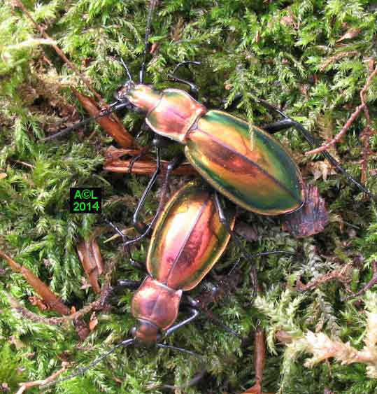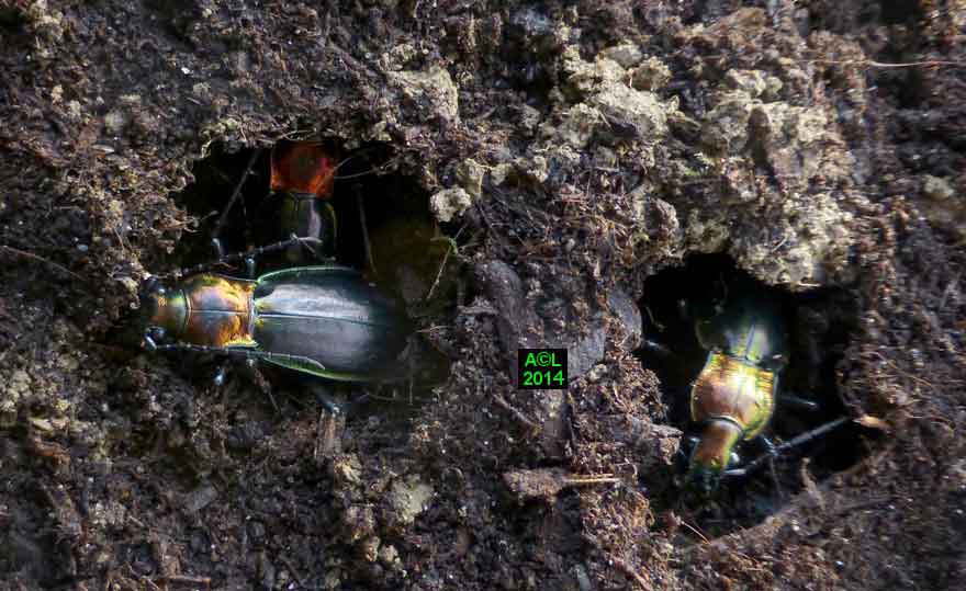 Entre l'élevage et l'épingle de collection le choix a été plus que difficile, la bête pouvant se qualifier de rare. Néanmoins, estimant l'occasion trop belle pour la laisser passer j'ai décidé de "tenter le coup". Contre toute attente les accouplements se sont très vite multipliés, et cela totalement hors saison ( quoique ! cf. nota ! ), puisque la "repro" de nos Chrysocarabus est printanière. Epuisé semble-t-il par ses excès génésiques le mâle est mort avant l'hiver, et que ce soit avant ou après hivernage ... les prometteuses femelles n'ont jamais pondu !