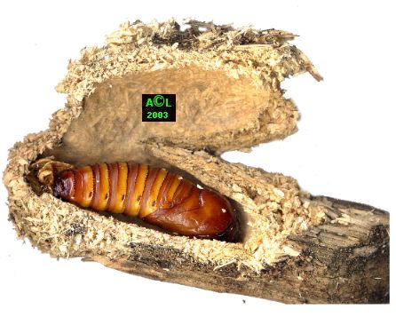 nymphose chez la chenille de Cossus, puisque qu'au gré de