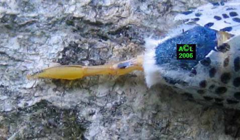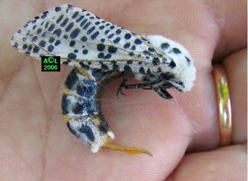 femelle de Zeuzère "faisant le mort", avec ovipositeur